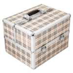Kuferek kosmetyczny 2-poziomowy w kratkę to funkcjonalne i estetyczne rozwiązanie do przechowywania kosmetyków oraz akcesoriów beauty. Idealnie sprawdzi się zarówno w salonie kosmetycznym, jak i podczas pracy mobilnej czy do użytku domowego. Dzięki kompaktowym wymiarom i przemyślanej konstrukcji zapewnia porządek oraz wygodny dostęp do zawartości.