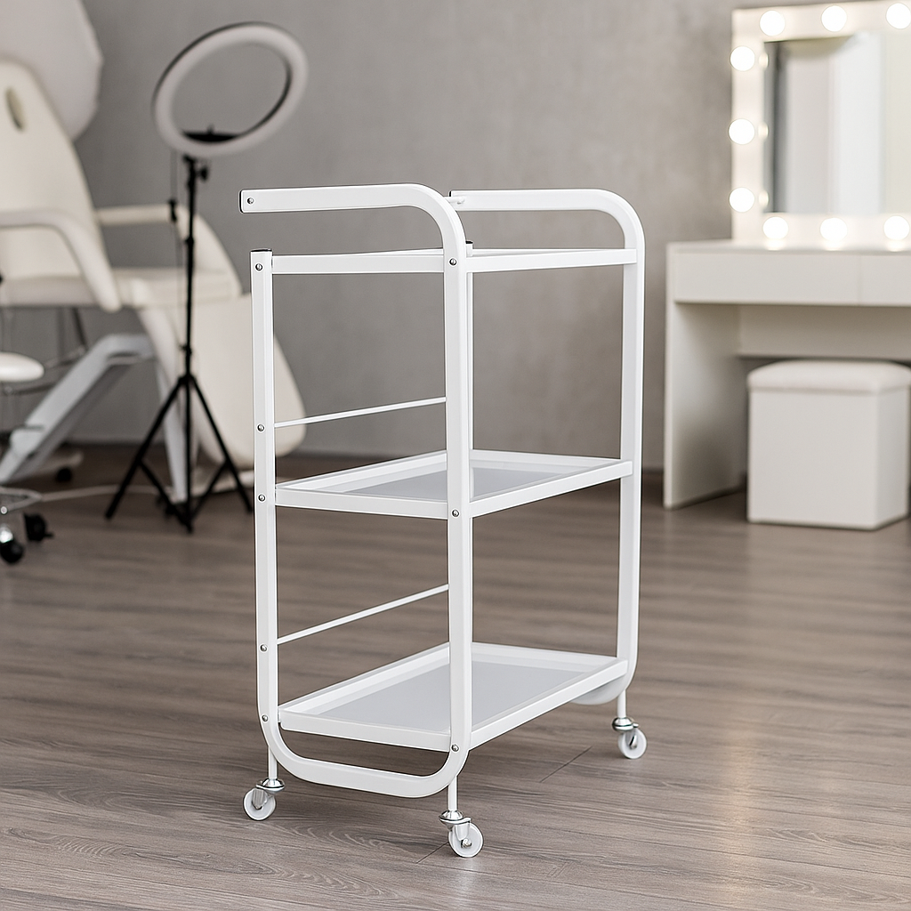 Stolik kosmetyczny G Plus z 3 półkami i praktycznym uchwytem to idealne rozwiązanie dla profesjonalistów branży beauty. Zaprojektowany z myślą o funkcjonalności i nowoczesnym designie, doskonale sprawdzi się w salonach kosmetycznych, gabinetach medycyny estetycznej, SPA, salonach fryzjerskich oraz salonach manicure.
