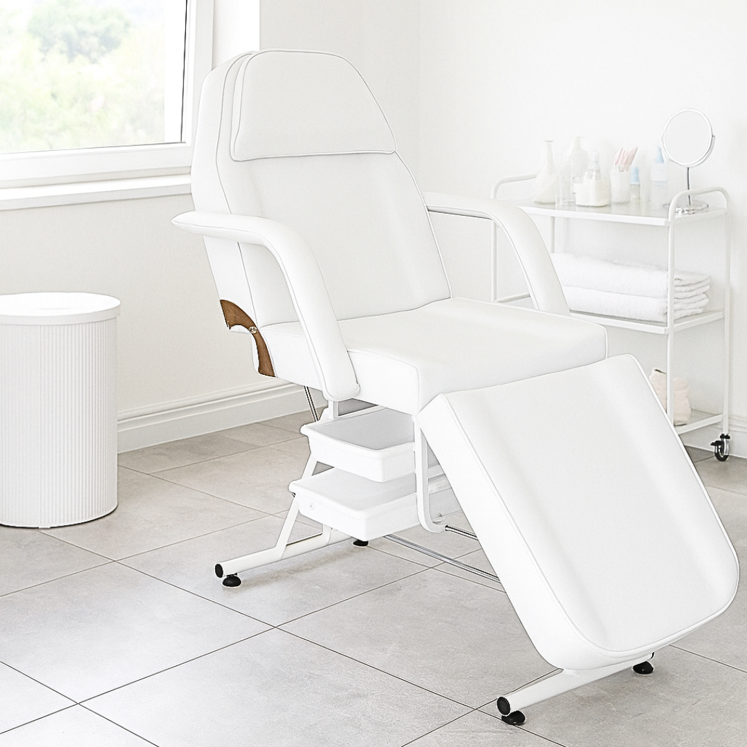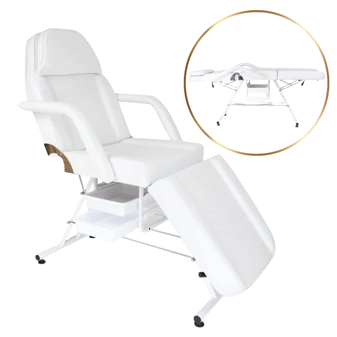 Manualny fotel kosmetyczny BASIC z kuwetami to funkcjonalne i stylowe rozwiązanie dla salonów kosmetycznych, studiów masażu, spa, odnowy biologicznej czy salonów tatuażu. Design w klasycznej bieli dopełnia nowoczesnej aranżacji wnętrz, a praktyczne wyposażenie zapewnia wygodę pracy i komfort klienta.