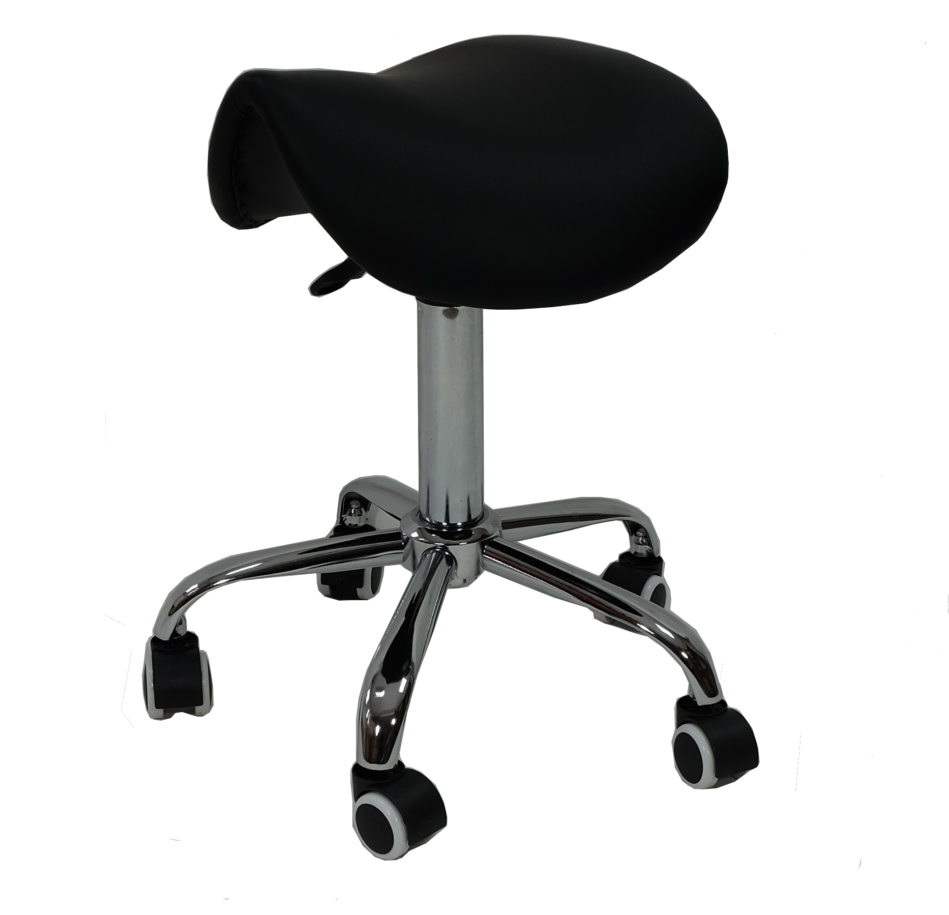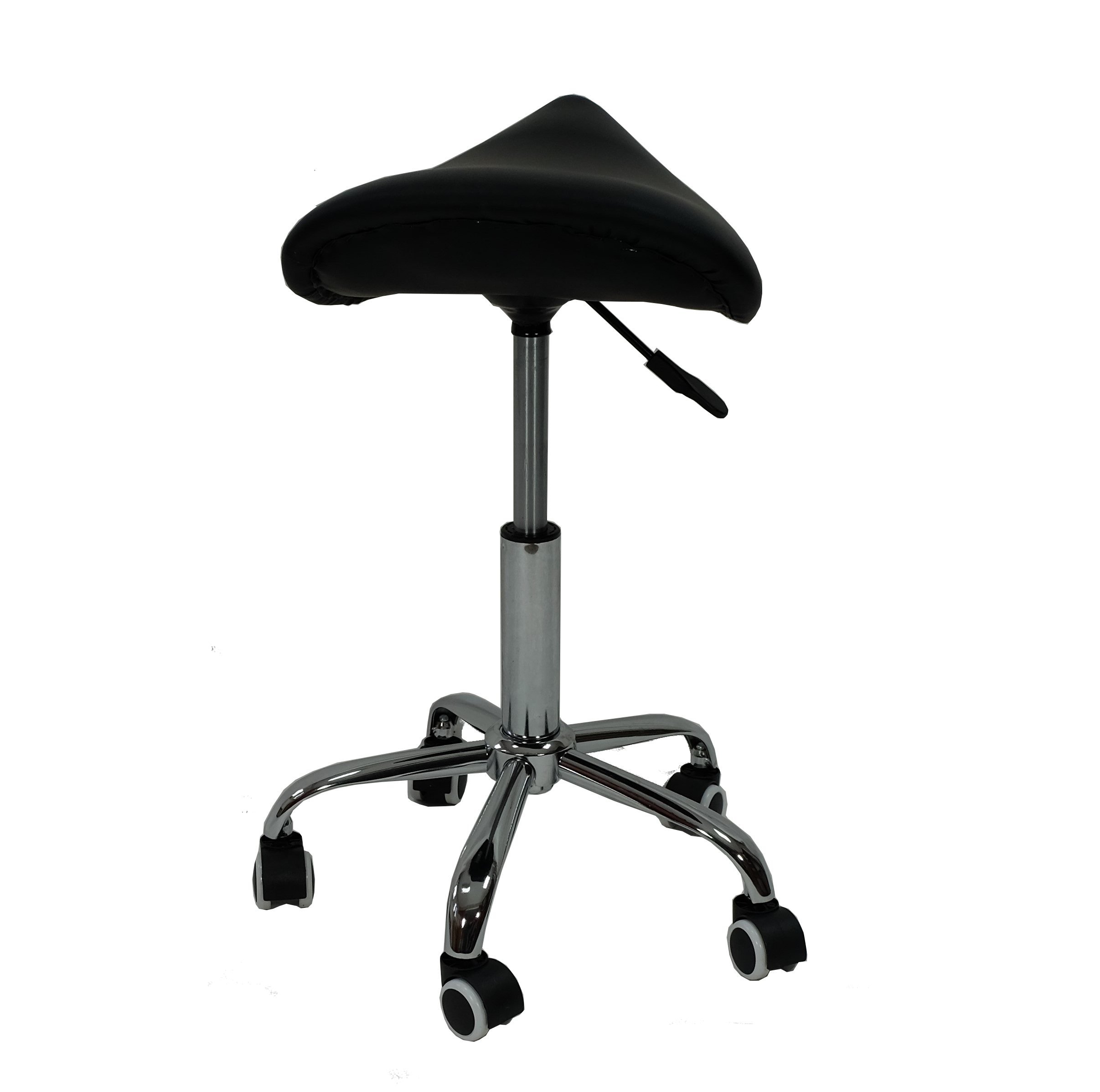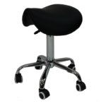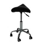 Taboret kosmetyczny bez oparcia z hydrauliczną regulacją wysokości. Siedzisko wyprofilowane w kształcie siodła zapewnia komfortową pracę bez poczucia zmęczenia. Uniwersalny wygląd taboretu wpasuje się w design każdego gabinetu kosmetycznego. Siedzisko pokryte wytrzymałą i odporną eko-skórą w kolorze czarnym, którą można czyścić wybranymi preparatami do dezynfekcji. Wypełnione pianką odporną na odkształcenia. Siedzisko osadzone jest na stabilnej pięcioramiennej pokrytej chromem metalowej podstawie. Komplet kółek pozwala na swobodne przemieszczanie taboretu podczas zabiegów. Za ustawienie wysokości siedziska odpowiada precyzyjny siłownik hydrauliczny.