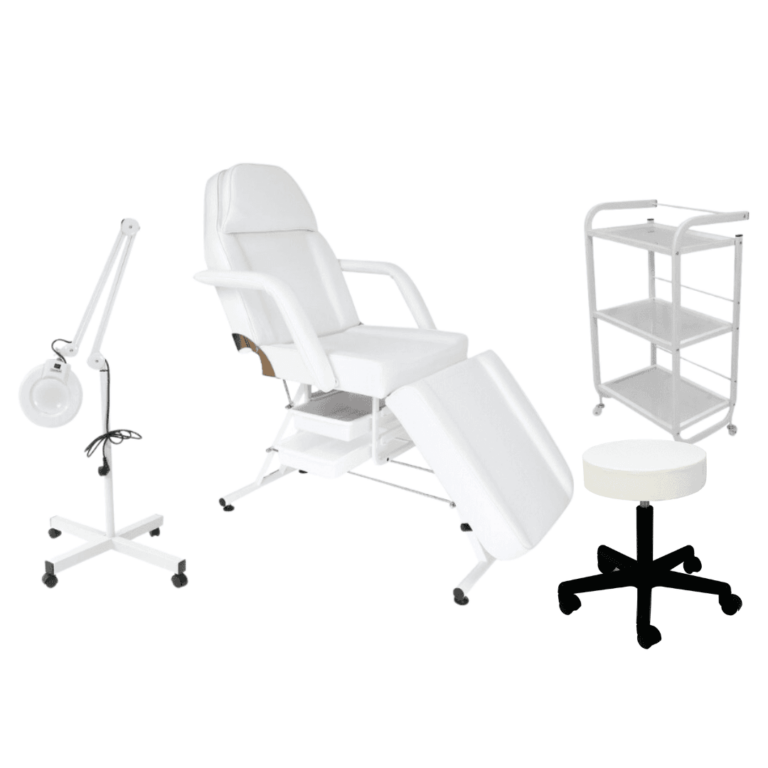 FOTEL KOSMETYCZNY z KUWETAMI+LAMPA+TABORET+STOLIK