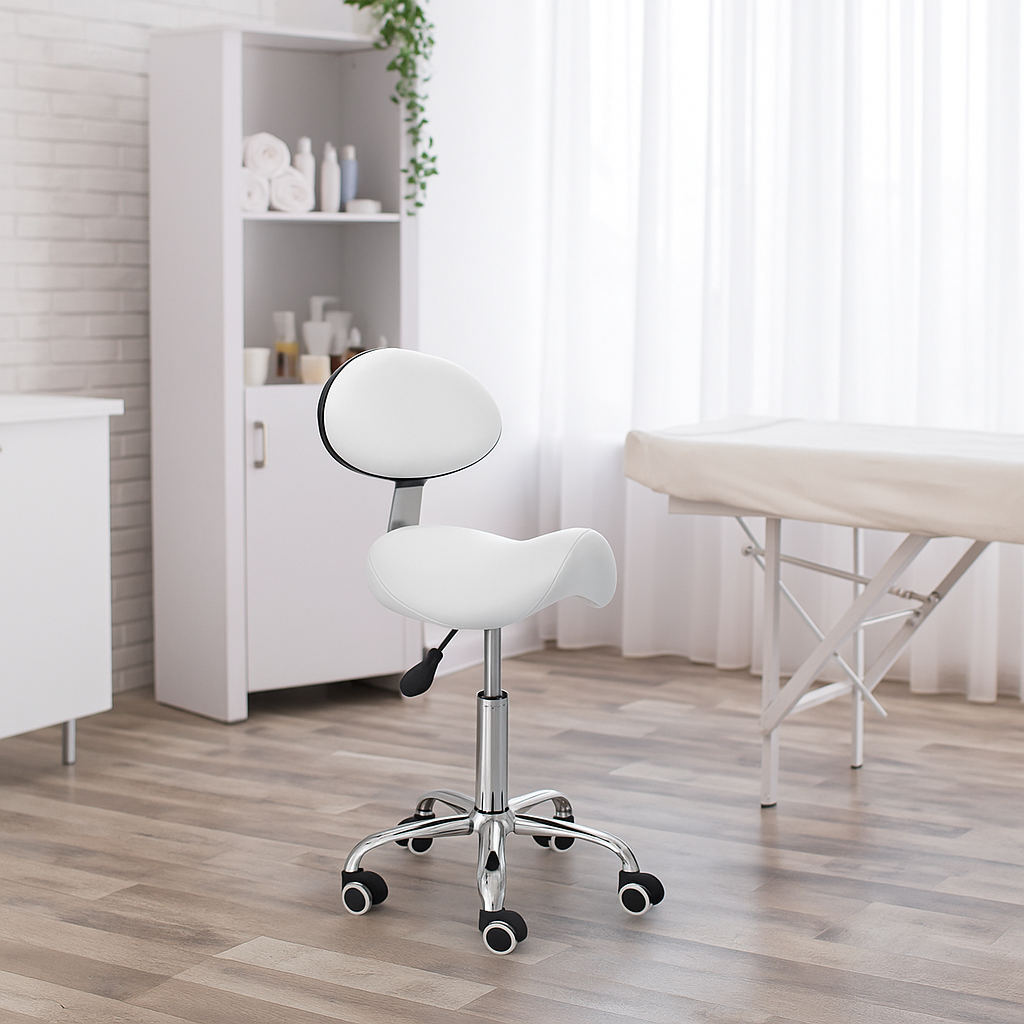 Taboret kosmetyczny OPTIMA z oparciem biały