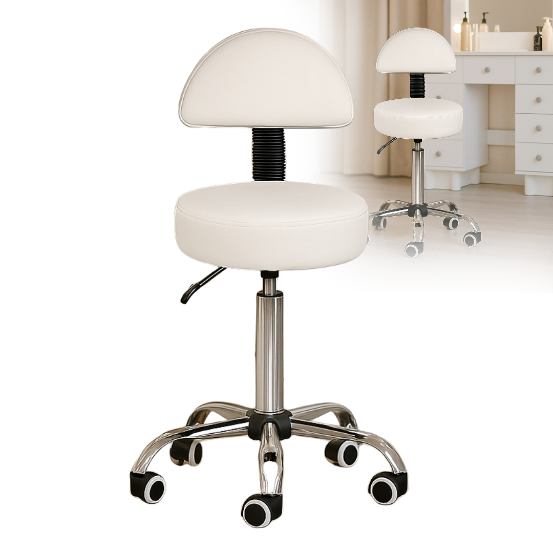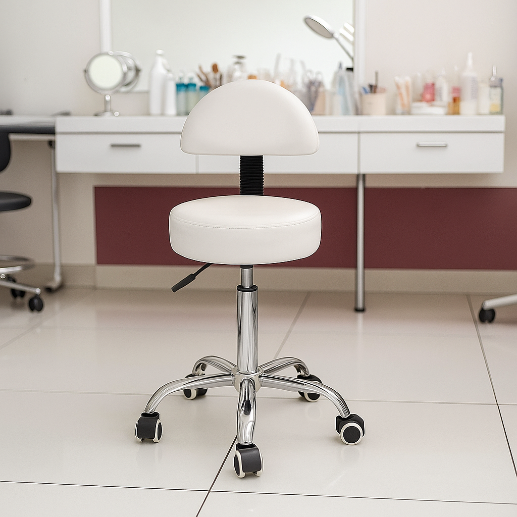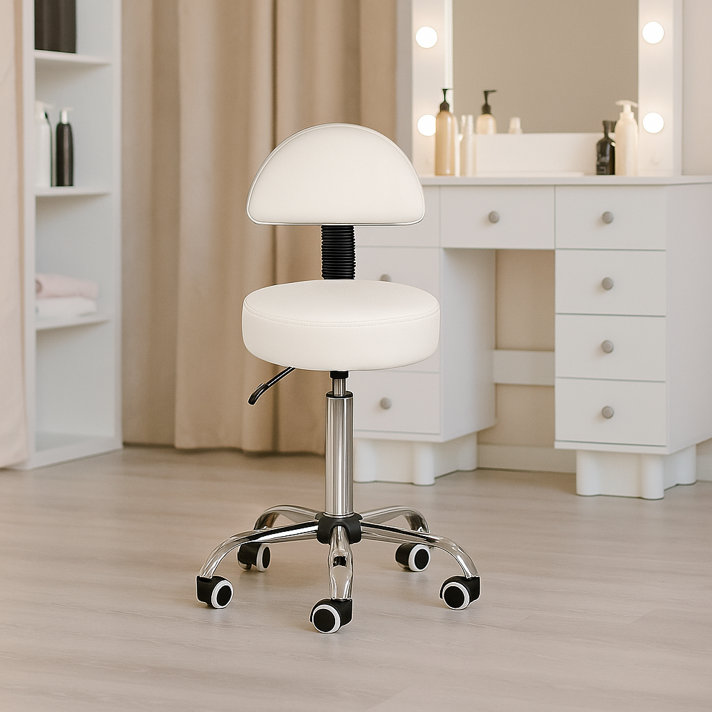 Taboret kosmetyczny RING z oparciem w kolorze białym to idealne rozwiązanie do salonów kosmetycznych, fryzjerskich, SPA oraz gabinetów medycyny estetycznej. Zapewnia wysoki komfort pracy, nowoczesny design i funkcjonalność, które doceni każdy profesjonalista.