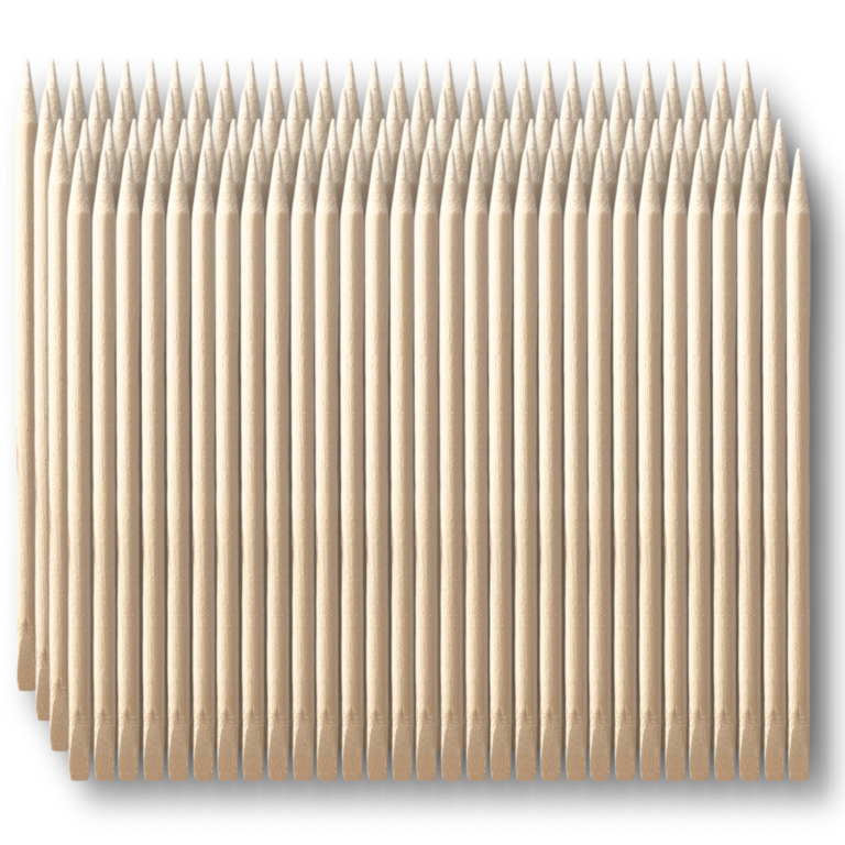 Patyczki z drzewa pomarańczowego. Z jednej strony zakończone szpicem, a z drugiej kopytkiem ułatwiającym odpychanie skórek. Lekkie i wygodne w użyciu.