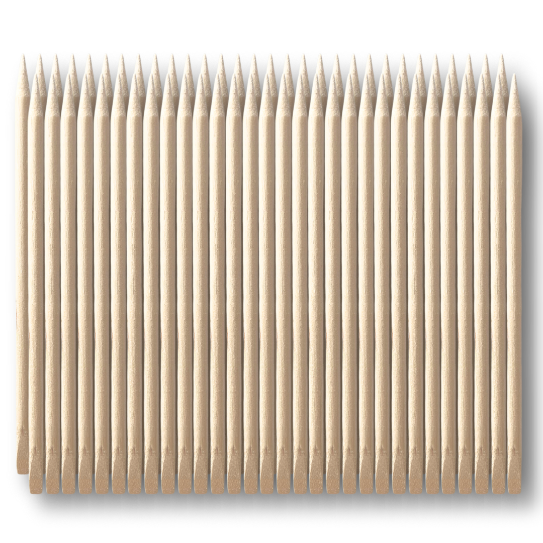 Patyczki z drzewa pomarańczowego. Z jednej strony zakończone szpicem, a z drugiej kopytkiem ułatwiającym odpychanie skórek. Lekkie i wygodne w użyciu.