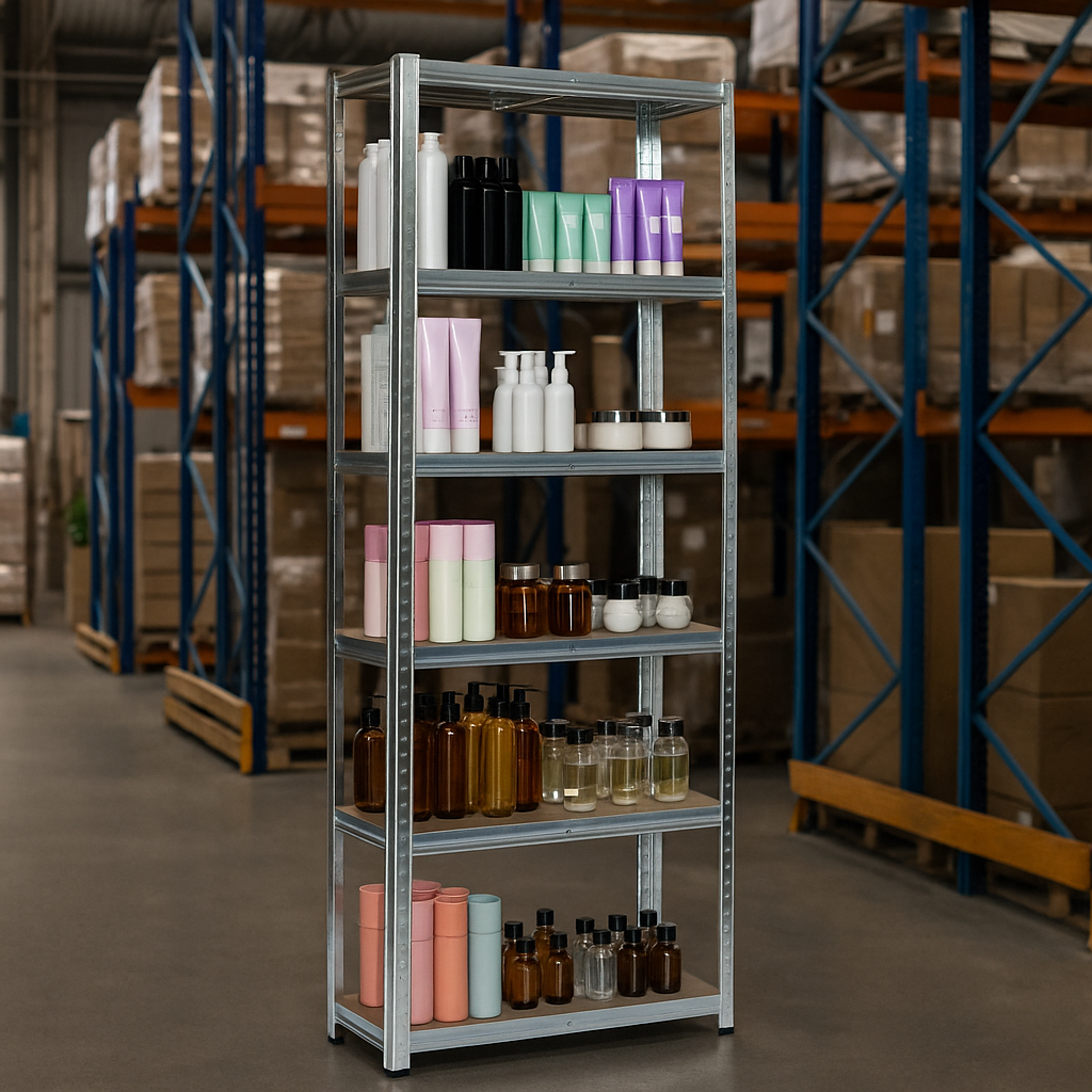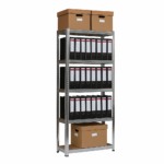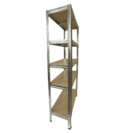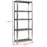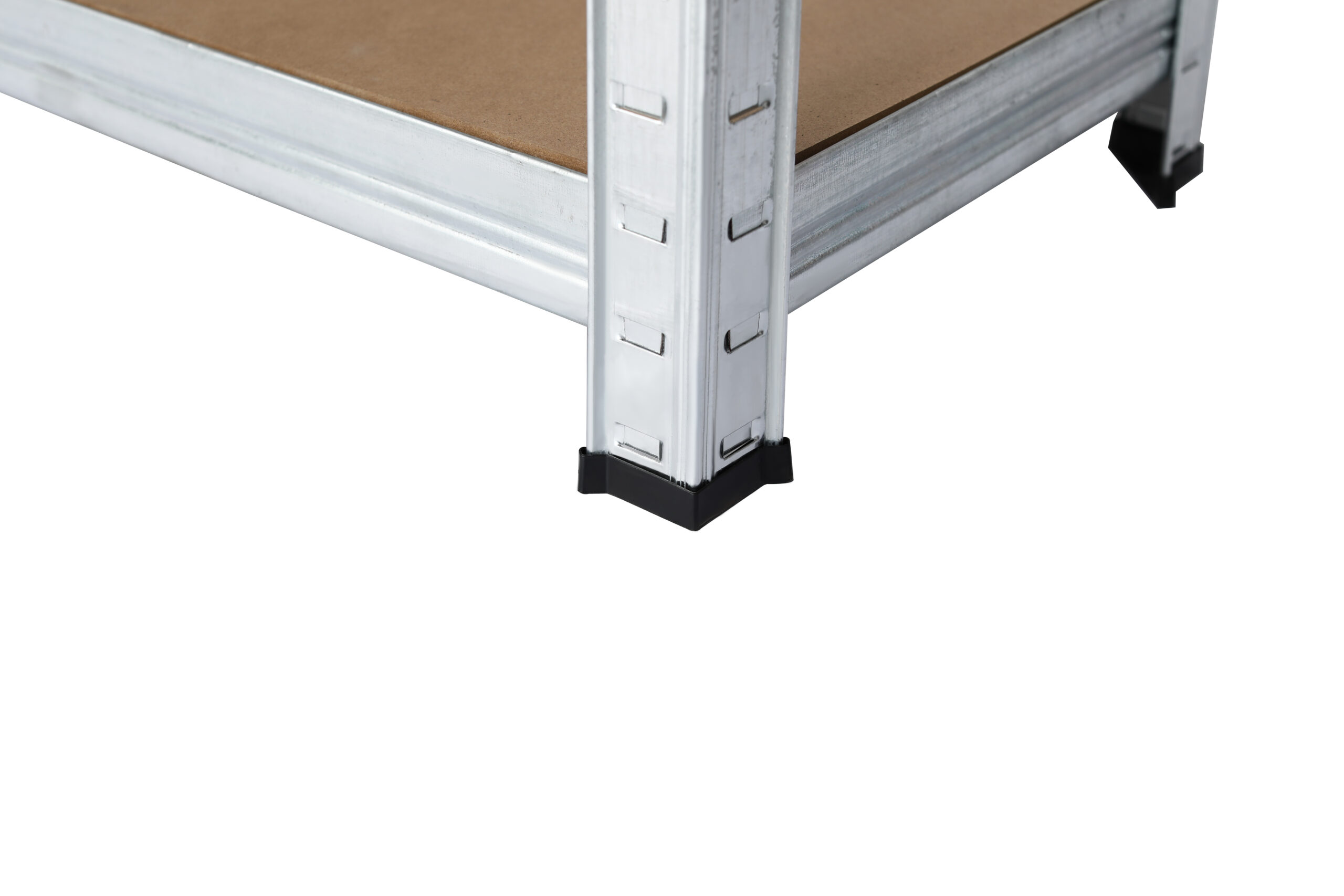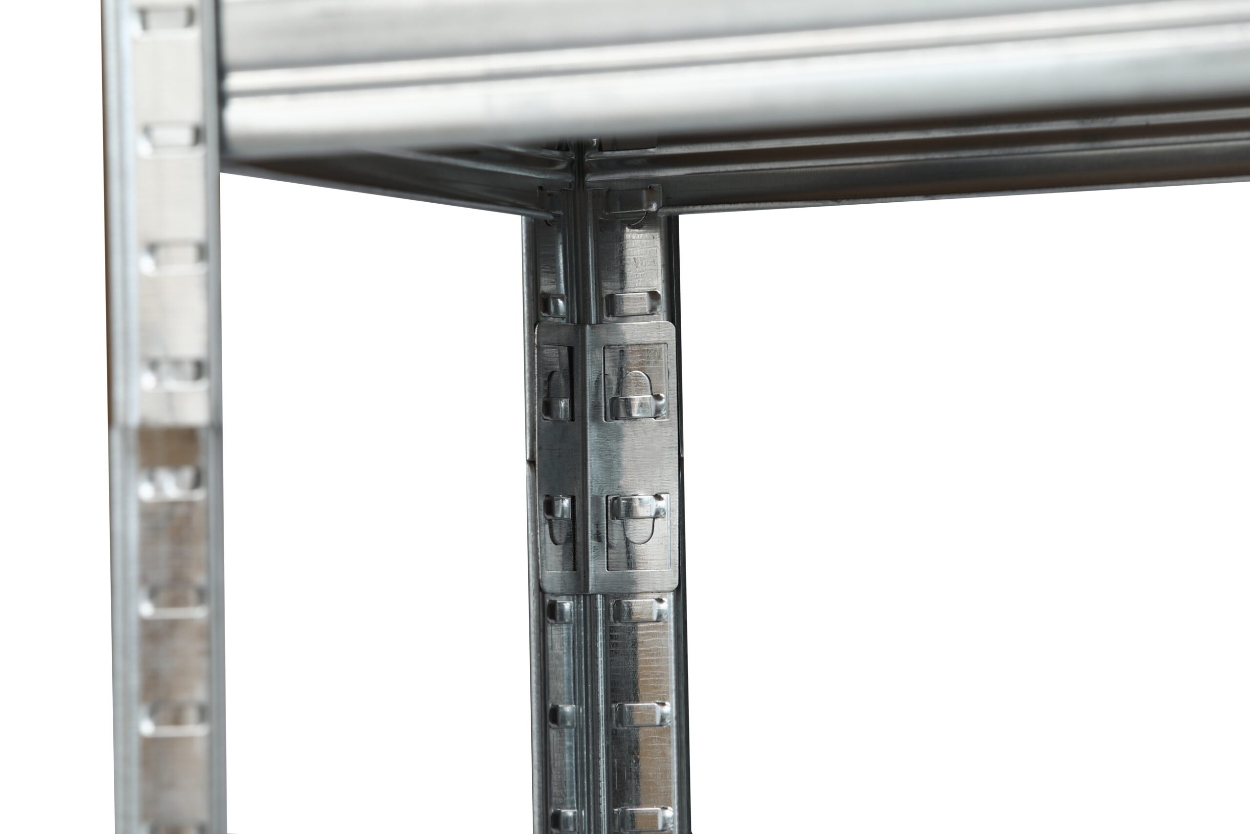 Regał jest wykonany ze stali galwanizowanej (ocynkowanej) oraz płyty MDF. Posiada regulację wysokości półek, którą można z łatwością zmienić w dowolnej chwili – do montażu regału nie potrzeba specjalistycznych narzędzi. Każda półka posiada dodatkowe wzmocnienie na środku.