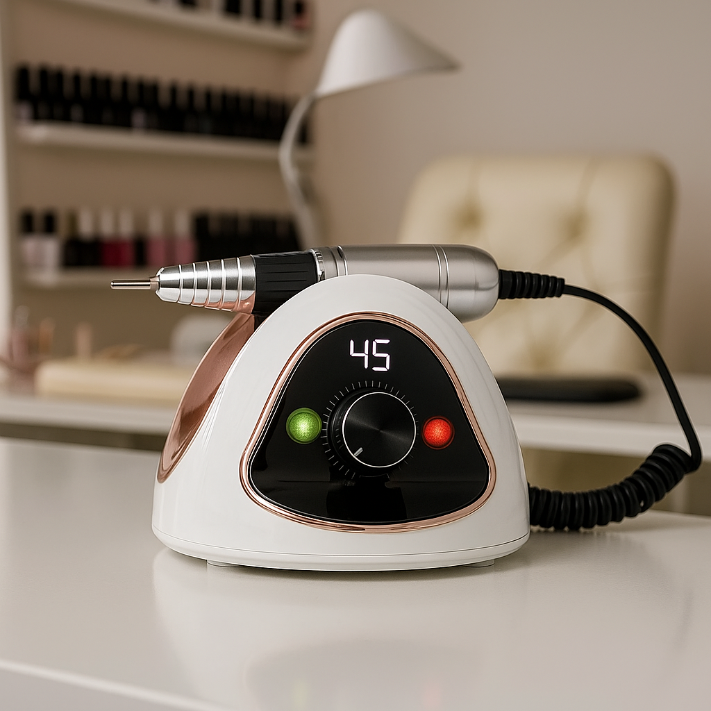 Mała i poręczna frezarka doskonale zmieści się na każdym blacie biurka stylistki. Bardzo cicha!