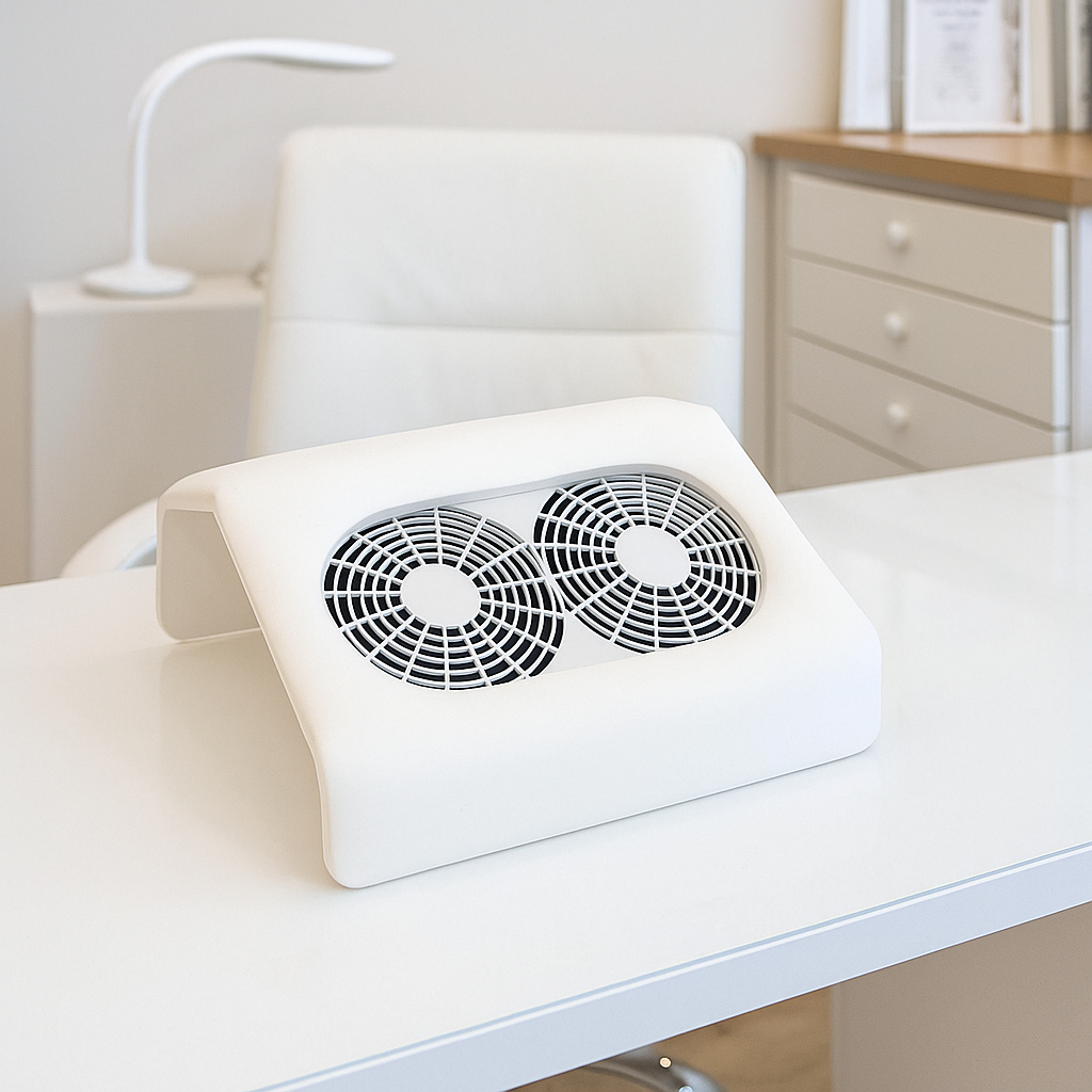 Pochłaniacz pyłu podwójny CLASSIC to niezastąpione urządzenie do gabinetów kosmetycznych, jak i do użytku domowego — idealne, gdy zależy Ci na czystej, higienicznej pracy oraz komforcie klienta i stylistki. Jego kompaktowa, ergonomiczna konstrukcja pozwala wygodnie oprzeć dłoń, co ułatwia precyzyjne piłowanie i stylizację paznokci. Dzięki temu urządzeniu kurz i pył powstałe podczas pracy są skutecznie zasysane, co znacząco podnosi jakość obsługi i dbałość o zdrowie.